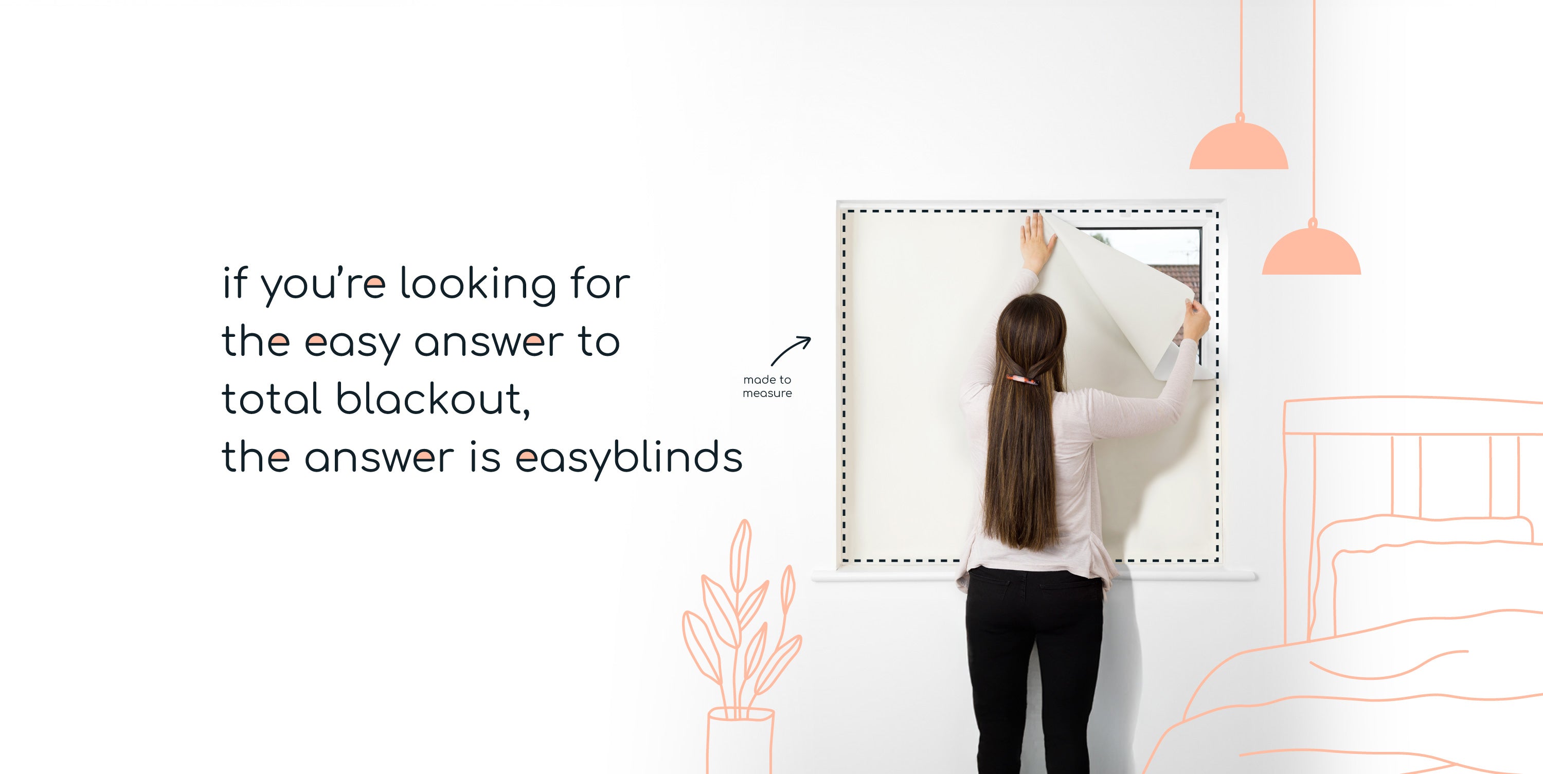 Our beautifully simple, cost-effective solution is designed for people who need total blackout, whether temporary or permanent. Our blinds are free from nasties, cut-to-size and supplied with everything you need to ensure you sleep right from the very first night. So if you are looking for the good night’s sleep you can only get with total blackout, the answer is easyblinds.