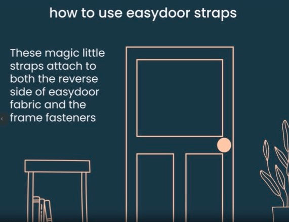 In your easydoor kit you get easynight premium blackout fabric and removable self-adhesive fastener strips and stickers to securely fix your easydoor in place. You also get a pair of straps to hold your easydoor blind open - the straps attach to both the fabric and the fastener stickers. The straps don't need to go all of the way around the roll, they just need to touch against the roll to hold it as shown.