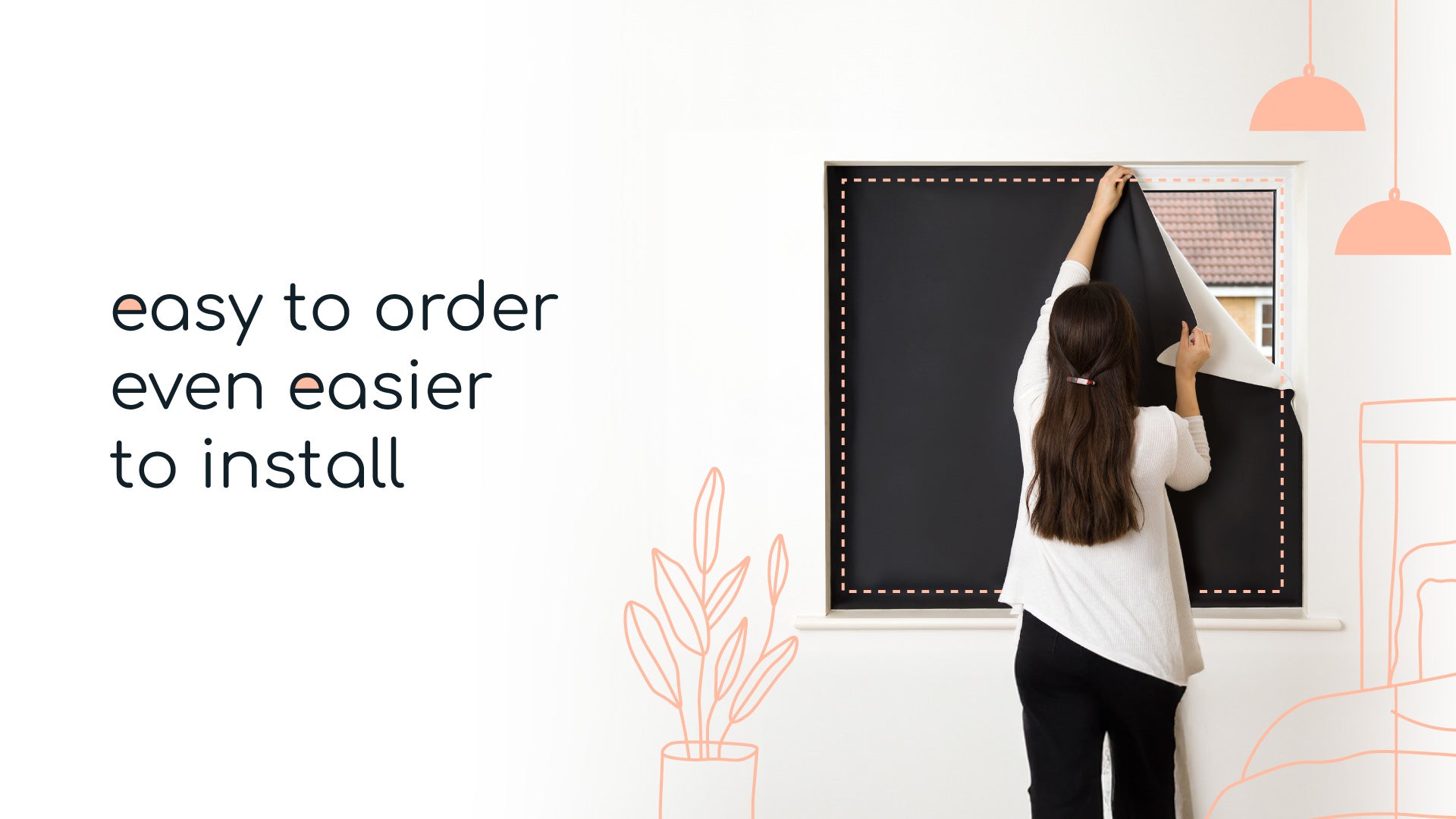 It’s simple to install, and once the attachments are on the window frame it’s a matter of seconds to attach or remove the blind. To achieve complete darkness our unique design incorporates excess fabric on each of the four edges, which stops light from entering around the blackout blind. For this reason please always add 8cm to the height and width when choosing your size.